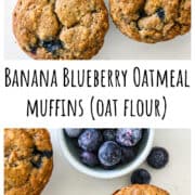 Note: This recipe was originally published in 2018 as "banana blueberry spelt muffins" using a flax egg. In the process of updating the recipes on this site as gluten-free, it has been changed to an oatmeal muffin. If you came here to find the spelt flour version, please send me an email and I will forward that recipe.